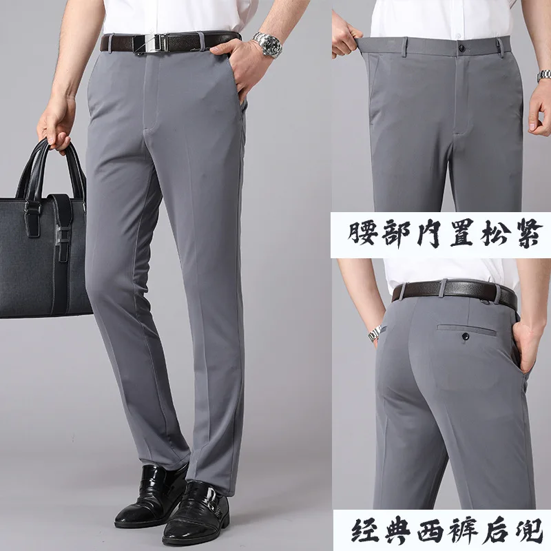 Spring Summer Dress Pants Men Stretch Straight Slim Suit Pants Men Thin Business Men Formal Casual Long Pants